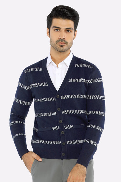Men Full Sleeves Navy Blue Cardigan