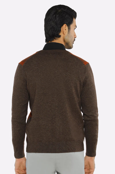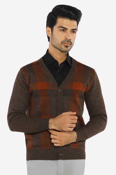 Men Full Sleeves Brown Cardigan