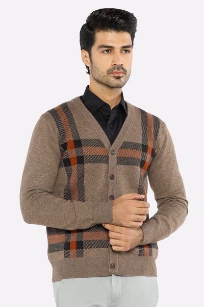 Men Full Sleeves Light Brown Cardigan