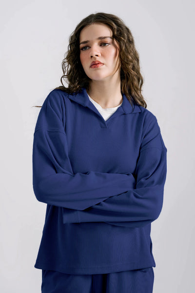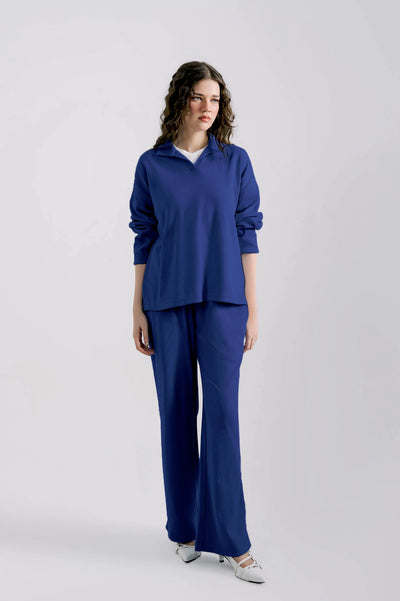 The relaxed-fit top features a minimal design with long sleeves, paired with wide-leg knitted trousers that offer a flattering and comfortable fit. Perfect for casual wear, travel, or elevated loungewear, this versatile 2-piece set can be styled together or worn separately.