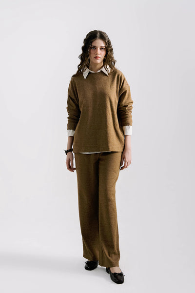 The relaxed-fit top features a minimal design with long sleeves, paired with wide-leg knitted trousers that offer a flattering and comfortable fit. Perfect for casual wear, travel, or elevated loungewear, this versatile 2-piece set can be styled together or worn separately.