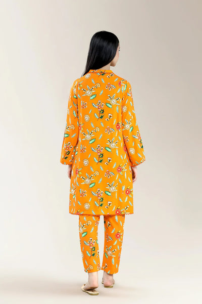 Basic Printed Viscose Linen Orange 2Pc