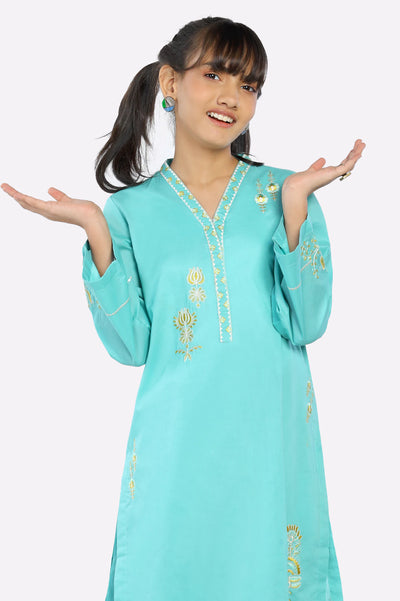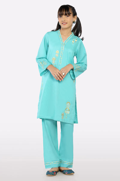 Sky Blue Embroidered Teens 2PC
