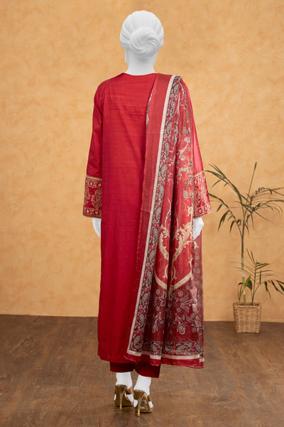 Red Embroidered 3PC Unstitched
