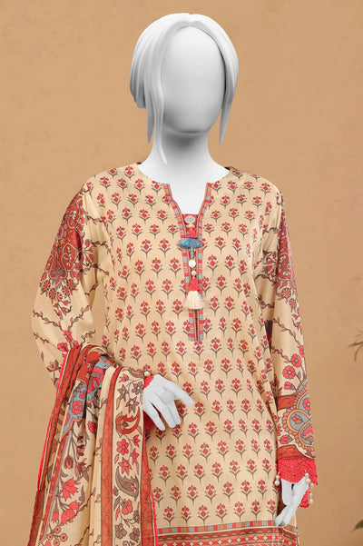 Cream Printed 3PC Unstitched