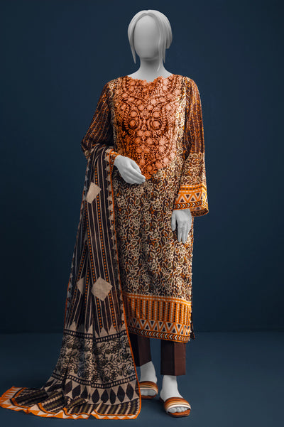 Dark Brown Embroidered 3PC Unstitched