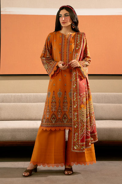 Rust Printed 3PC Unstitched