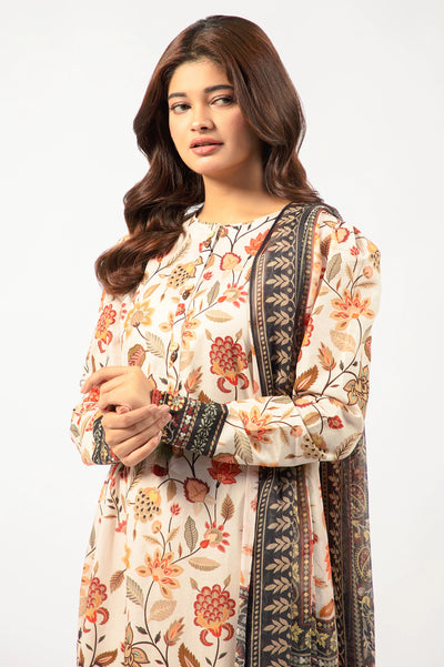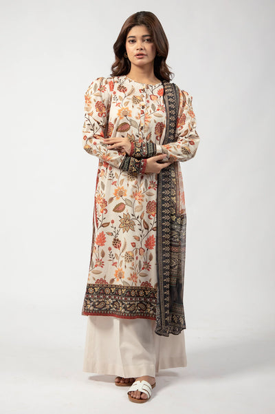 Beige Printed 3PC Unstitched