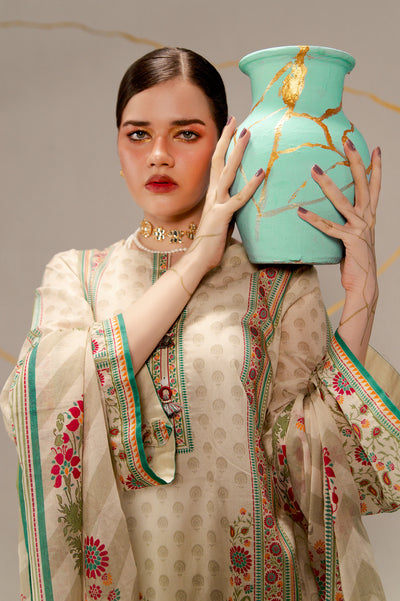 Beige Printed 3PC Unstitched