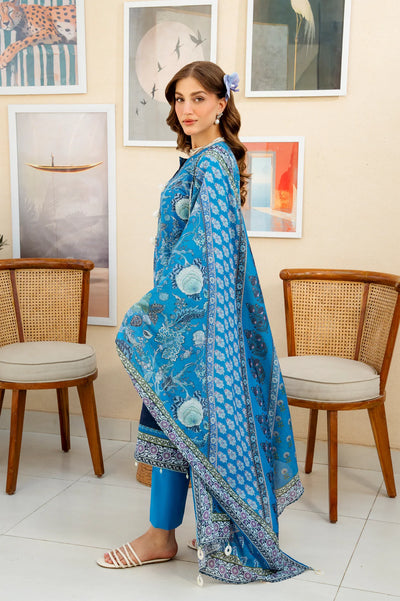 Printed Lawn-Blue Unstitched 3PC