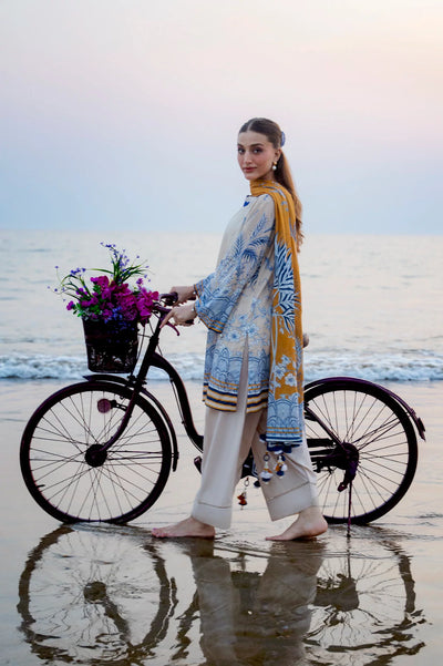 Printed Lawn-Beige Unstitched 3Pc