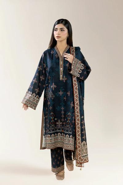 Printed Khaddar-Dark Blue Unstitched 3PC