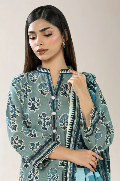 Printed Khaddar-Blue Unstitched 3PC