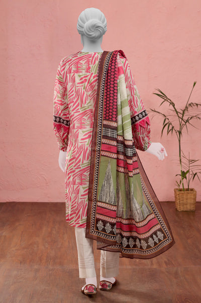 Pink Printed Unstitched Kurti With Dupatta